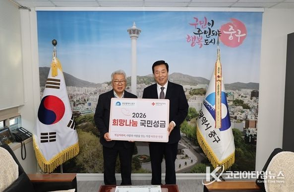 코리아타임뉴스 이아름 기자 | 부산 중구는 지난 16일 대한적십자사 부산지사에 2026년도 적십자 특별회비 100만 원을 전달하며 이웃사랑 실천에 나섰다.