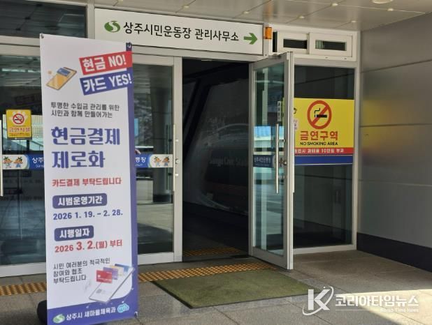 코리아타임뉴스 노승선 기자 | 상주시는 현금 관리에 드는 행정력 낭비를 방지하고 거래의 디지털 기록화를 통한 세입 관리의 투명성 확보 및 신뢰도 상승을 위하여 2026. 3. 2.(월)부터 상주 체육시설 무현금 결제를 시행한다.