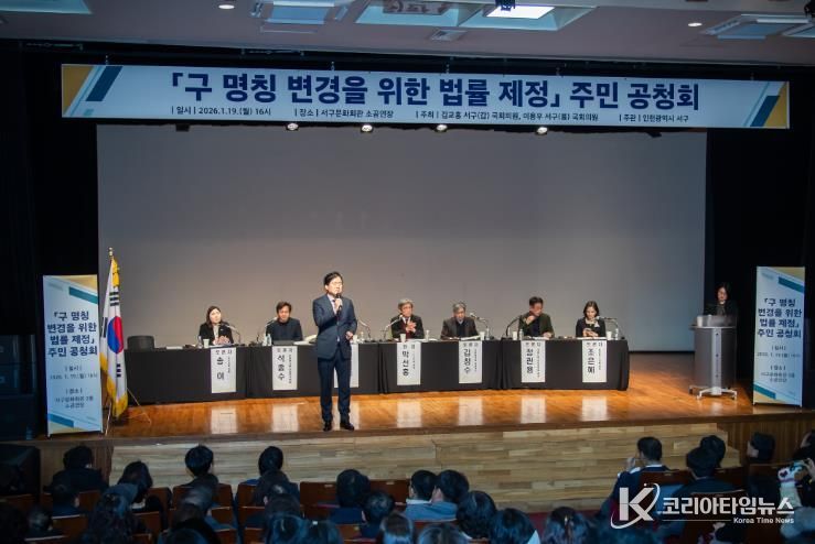 코리아타임뉴스 사회팀 | 인천 서구는 지난 19일 서구문화회관 소공연장에서 지역주민 약 200여 명이 참석한 가운데 ‘구 명칭 변경을 위한 법률 제정 주민 공청회’를 개최하고 주민 의견을 수렴했다.