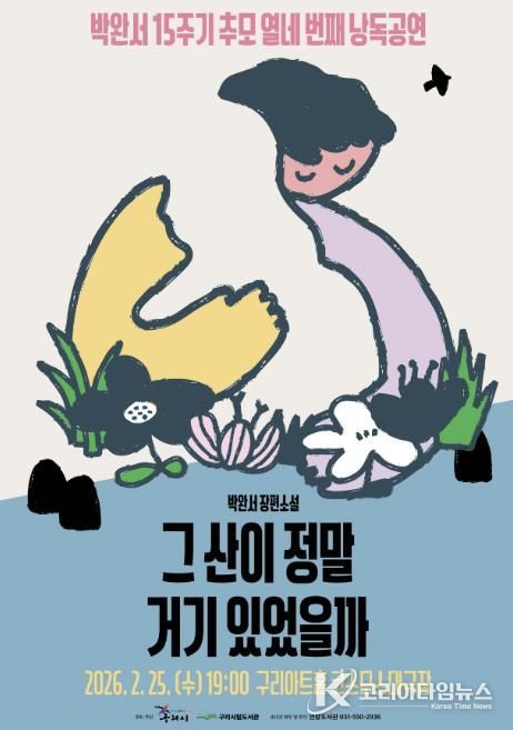 코리아타임뉴스 경기취재본부 | 구리시는 박완서 작가 타계 15주기를 맞아 작가의 문학세계와 업적을 되새기고 그 의미를 시민과 함께 나누고자, 오는 2월 25일 오후 7시 구리아트홀 코스모스 대극장에서 추모 낭독 공연을 개최한다고 밝혔다.