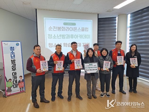 코리아타임뉴스 전남취재본부 | 순천봉화라이온스클럽(회장 조동천)은 지난 19일 순천시 청소년문화의집에서 청소년방과후아카데미 초등·중등 청소년들의 학습 지원을 위해 100만 원 상당의 교재를 전달했다.