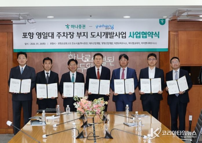 포항시는 20일 서울 여의도 하나증권 본사 사옥에서 영일대해수욕장 공영주차장 부지를 활용한 도시개발사업에 대한 사업협약을 체결했다.