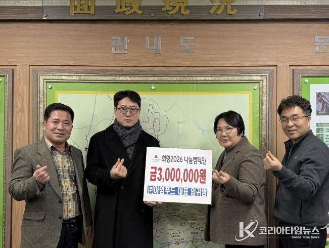함평군 대동면은 21일 “전날 관내 조리식품 제조업체인 ㈜아임푸드가 전날 기탁금 300만 원을 전달하며 희망2026 나눔 캠페인에 동참했다”고 밝혔다.