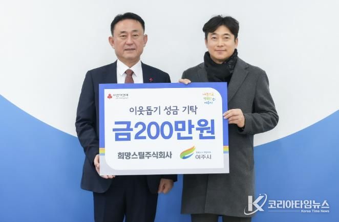 코리아타임뉴스 기동취재팀 | 지난 19일 여주시 삼교동 소재 희망스틸주식회사 김영기 대표는 여주시를 방문하여 이웃돕기 성금 200만원을 기탁했다.