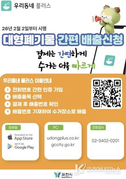 코리아타임뉴스 사회팀 | 과천시는 시민 편의를 높이기 위해 오는 2월 2일부터 대형폐기물 온라인·모바일 배출 시스템을 본격 운영한다고 밝혔다.