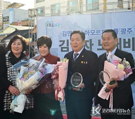 코리아타임뉴스 노승선 기자 | 광주 남구의회 박용화 부의장이 지난 20일, 가수 김연자 노래비 건립에 헌신적인 노고와 공로를 인정받아 사직동주민자치회로부터 감사패를 받았다.