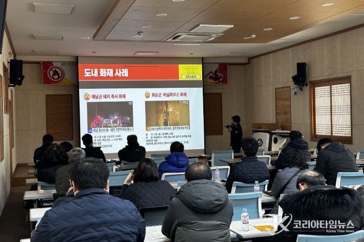 코리아타임뉴스 김태훈 기자 | 강진소방서(서장 정용인)는 겨울철 난방기구 사용 증가로 화재 위험이 높아지는 축사 및 원예농가를 대상으로 1월 20일 오후 2시 화재 예방 교육을 실시했다고 21일 밝혔다.