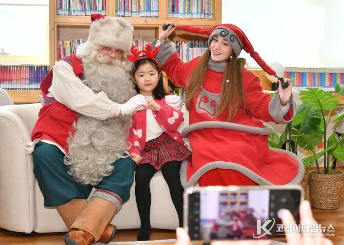 코리아타임뉴스 이아름 기자 | 핀란드 로바니에미시 산타마을에서 날아온 ‘리얼 산타’와 ‘요정 엘프’가 화천 어린이들과의 약속을 지키기 위해 공공 도서관을 찾았다.