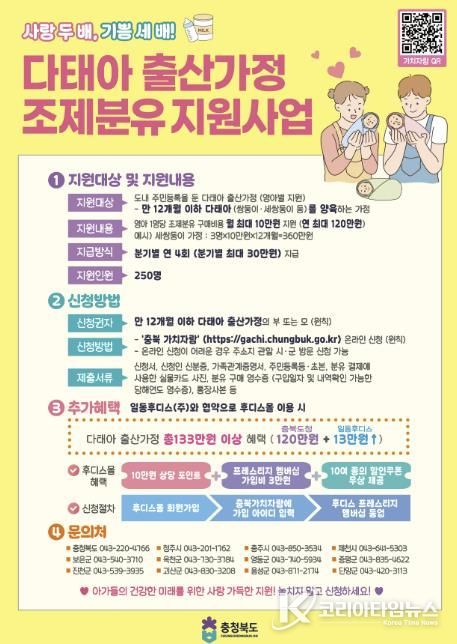 이와 함께, ‘다태아 출산가정 조제분유 지원사업’도 시행된다.