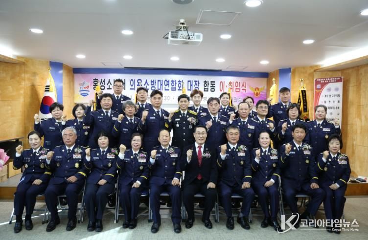 코리아타임뉴스 김태훈 기자 | 이동우 홍성소방서장은 1월 23일 소방서 3층 대회의실에서 홍성소방서 의용소방대연합회 대장 합동 이·취임식을 개최했다.