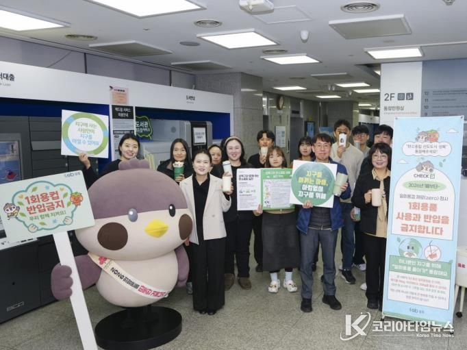 코리아타임뉴스 사회팀 | 탄소중립 선도도시 성북구가 2026년 병오년 새해를 맞아 구청 로비에서 ‘일회용 컵 제로(zero) 청사 만들기’ 캠페인을 실시했다.