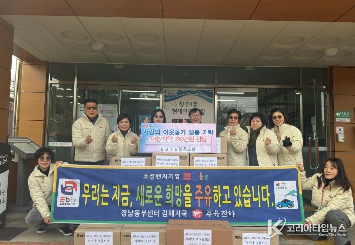 코리아타임뉴스 오영주 기자 | 김해시 장유1동은 지난 23일 EBTS협동조합 김해지국(지국장 홍두연)에서 장유1동 주민을 위해 써달라며 390만원 상당의 칫솔과 치약을 기탁했다고 밝혔다.