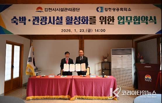 코리아타임뉴스 경북취재본부 | 김천시시설관리공단은 김천상공회의소와 함께 김천지역의 숙박 및 관광시설 활성화를 위한 업무협약을 체결했다.