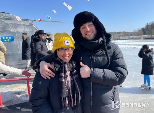 코리아타임뉴스 이아름 기자 | 철원군 오지리 빙상장에 낯선 외국인 커플이 모습을 드러내 눈길을 끌었다.