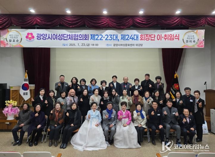코리아타임뉴스 전남취재본부 | 광양시 여성단체협의회는 지난 1월 23일, 여성문화센터 1층 대강당에서 제 22․23대 회장 이임과 제24대 회장 취임을 기념하는 이·취임식을 성황리에 개최했다.