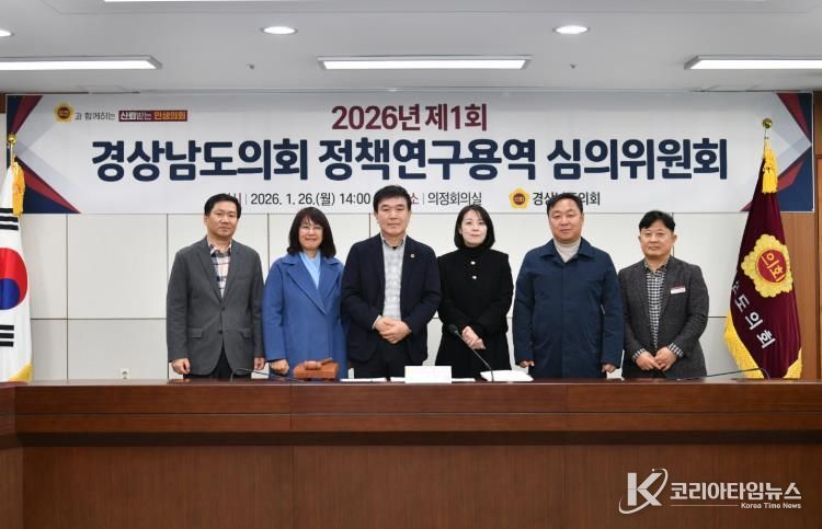 코리아타임뉴스 오영주 기자 | 경상남도의회는 1월 26일, 의정회의실에서 ‘2026년 제1회 정책연구용역 심의위원회’를 개최하고, 올해 상반기 추진될 8개 과제를 최종적으로 확정하며 민생 중심의 정책연구 활동에 본격적으로 나섰다.
