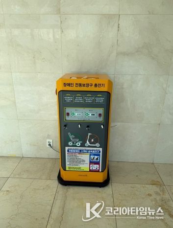 코리아타임뉴스 경북취재본부 | 김천시시설관리공단(이사장 김재광)은 시민 이용 편의 증진을 위해 김천실내수영장 1층 로비에 전동보조기기 충전기 설치를 완료했다고 밝혔다.
