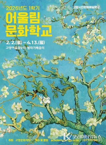 코리아타임뉴스 기동취재팀 | 고양문화재단이 운영하는 고양시민문화예술학교 '2026 어울림문화학교 1학기'가 2월 2일부터 4월 13일까지 진행된다. 이번 학기는 겨울의 끝자락에서 새로운 봄의 계절을 맞이하는 설렘을 담아 총 38개 프로그램 59개 반으로 운영된다.