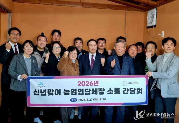 코리아타임뉴스 세종취재분부 | 최민호 세종특별자치시장이 27일 조치원읍에서 2026년 농업인단체장과의 소통 간담회를 통해 허심탄회한 현장 소통을 펼쳤다.