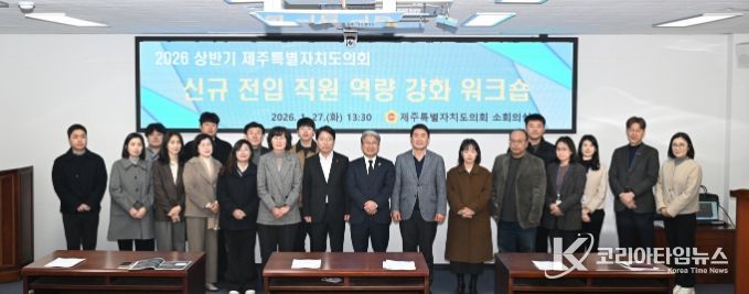 코리아타임뉴스 이아름 기자 | 제주특별자치도의회 의회운영위원회는 지난 1월 27일, 도의회 의사당 소회의실에서 2026년 상반기 정기인사로 전입한 직원 및 실무 역량 배양이 필요한 직원들을 대상으로 ‘역량 강화 워크숍’을 개최했다.