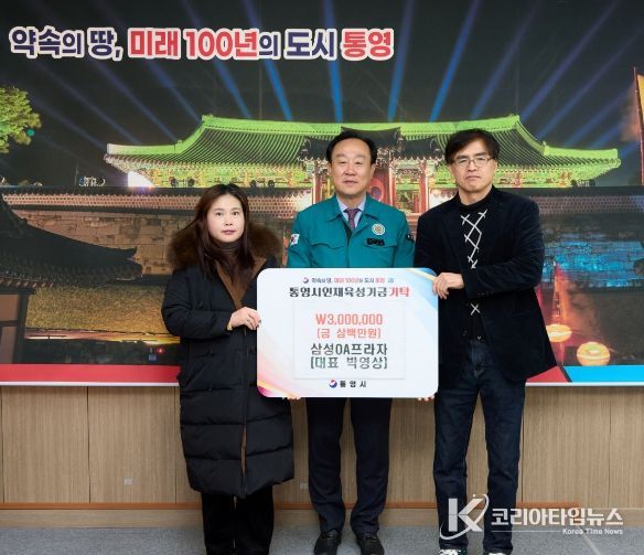 코리아타임뉴스 오영주 기자 | 삼성OA프라자(대표 박영상)는 지난 27일 통영시에 인재육성기금 300만 원을 기탁했다.