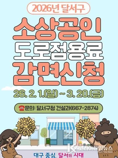 코리아타임뉴스 노승선 기자 | 대구 달서구는 경기침체로 어려움을 겪고 있는 소상공인의 경제적 부담을 완화하기 위해, 2026년도 도로점용료를 25% 감면한다고 28일 밝혔다.
