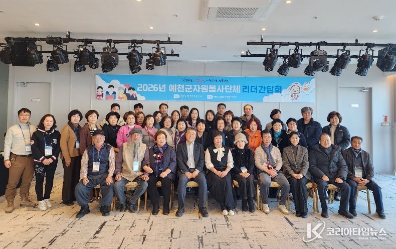 코리아타임뉴스 경북취재본부 | 사)예천군종합자원봉사센터(센터장 김종현)는 28일 관내 40개 자원봉사단체의 리더 및 관계자 등 50명이 참석한 가운데, 자원봉사단체 간 협력 강화와 리더 역량 강화를 위해 ‘2026 예천군 자원봉사 단체리더 간담회’를 실시했다.