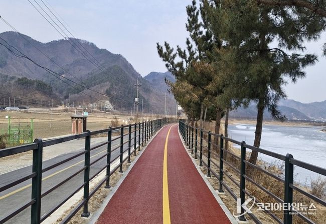 코리아타임뉴스 충북취재본부 | 옥천군은 청산면 하서리에서 청성면 산계리까지 이어지는 보청천 자전거도로 전 구간을 준공했다고 밝혔다.