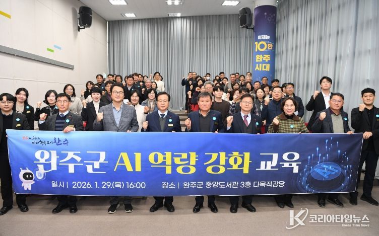 코리아타임뉴스 전북취재본부 | 완주군이 정부의 ‘인공지능(AI) 3대 강국 도약’ 정책과 연계해 인공지능 시대에 선제적으로 대응하기 위한 에이아이(AI) 역량 강화 교육을 1월 20일, 29일, 30일에 걸쳐 성공적으로 마쳤다.