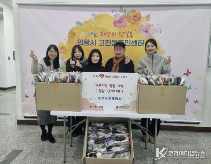 코리아타임뉴스 윤광희 기자 | 의왕시 고천동주민센터가 1월 29일, 지역 내 취약계층을 돕기 위한 이웃돕기 물품으로 양말 1,000켤레를 기탁받았다.