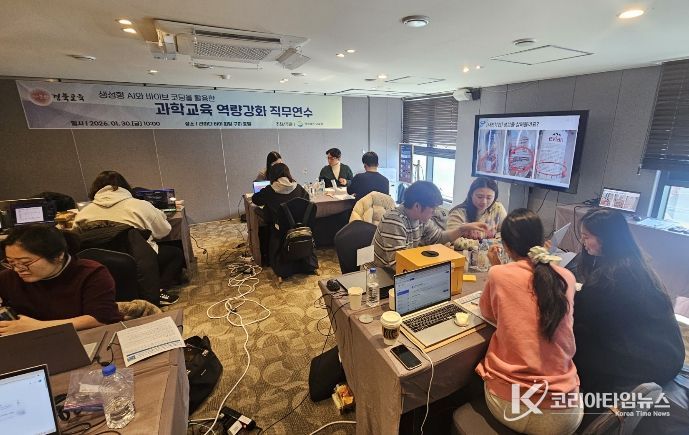코리아타임뉴스 사회팀 | 경북교육청은 30일 구미시에 있는 라마다 바이 윈덤 구미 호텔에서 도내 초․중등 교사 30여 명을 대상으로, 생성형 AI와 바이브 코딩을 활용한 과학교육 활성화를 위한 ‘과학교육 역량 강화 직무연수’를 개최했다고 밝혔다.