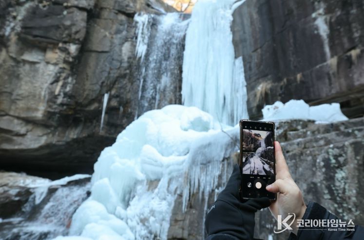 코리아타임뉴스 박찬식 기자 | 충북 괴산군 조령산 자락에 위치한 수옥폭포가 연일 이어진 강추위 속에서 거대한 빙폭과 고드름으로 뒤덮이며 한겨울에만 볼 수 있는 장관을 연출하고 있다.