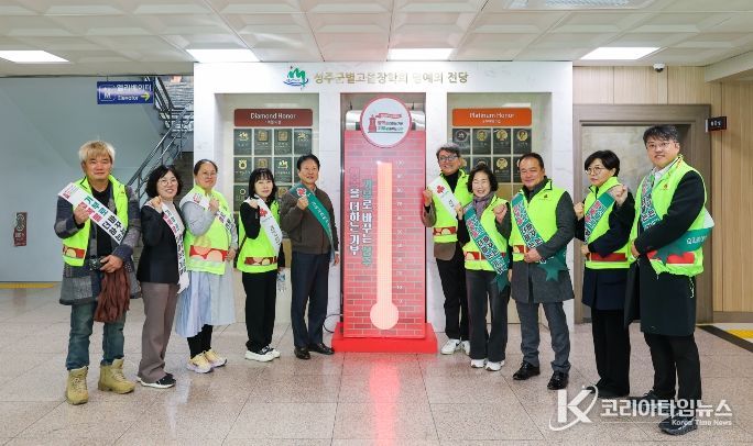 코리아타임뉴스 경북취재본부 | 성주군 성주읍에 위치한 영빈토건·두성건설에서 성금 500만원을 기탁하며 희망2026나눔캠페인 마지막 날 성주군 사랑의 온도탑을 뜨겁게 달궜다.
