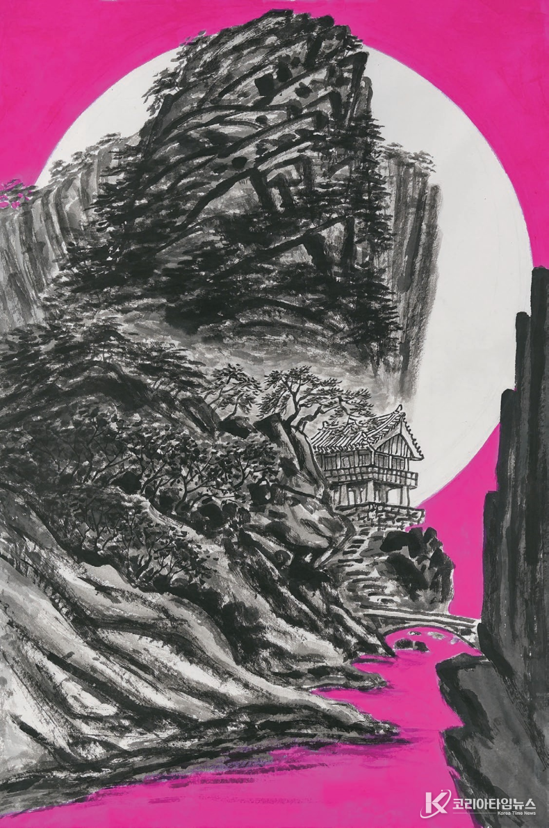 대표작 ‘월하시리즈’를 디지털 NFT로 변환한 ‘월화 2001’ 에디션 200점이 가상자산 거래소 ‘업비트’에서 순식간에 완판된 사례는 전통회화와 미디어아트의 결합이라는 가능성을 이미 입증했다. 대표작 ‘월하’는 몽환적인 꿈을 소재로 산수의 그릇을 빌려 표현한 연작으로, 새벽녘을 마주했던 순간들을 떠올리며 탄생시킨 보랏빛은 붉은색에 청색을 더해 자연스럽게 만들어 졌다고 한다.