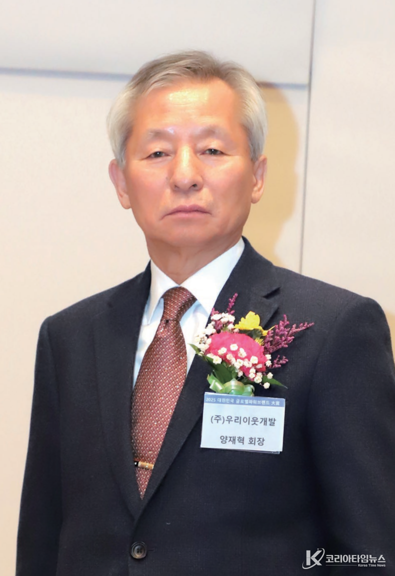 코리아타임뉴스 박찬식 기자 | 우리이웃개발 양재혁 회장 2025년 12월 23일 한국프레스센터에서 한국시사경제 • 코리아타임뉴스(윤광희 회장)주최, SBS • 기획재정부 • 교육부 • 문화체육관광부 • 농림축산식품부 • 산업통상부 • 기후에너지환경부 • 고용노동부 • 해양수산부 • 중소벤처기업부 후원으로 열린 ‘2025 대한민국 글로벌파워브랜드 대상(GPBA) 및 국회 상임위원장 표창 시상식’ 에서 양재혁 회장 대상과 국회 기획재정위원장 표창을 수상했다.