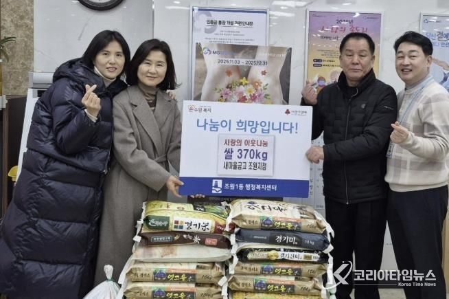 코리아타임뉴스 사회팀 | 수원시 장안구 조원1동 행정복지센터는 지난 3일, 수원새마을금고 조원지점이 설 명절을 맞아 어려운 이웃들을 돕기 위해 쌀 370kg을 후원했다고 밝혔다.