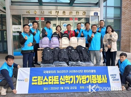 코리아타임뉴스 전남취재본부 | 여수산단로타리클럽과 키다리아저씨 단체가 지난 1월 30일 여수시 드림스타트 아동을 위한 500만 원 상당의 책가방을 후원했다.