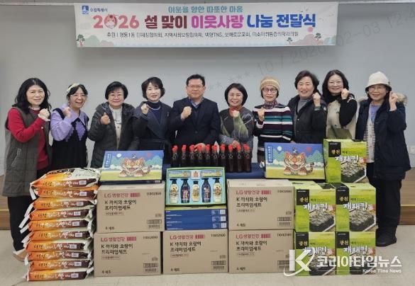 코리아타임뉴스 사회팀 | 영통구 영통1동은 지난 3일 영통1동 단체장협의회가 설 명절을 앞두고 관내 저소득 이웃을 위한 ‘설 맞이 이웃사랑 나눔 전달식’을 진행했다고 밝혔다.