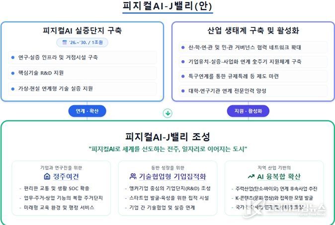 시는 AI 대전환 시대의 주도권을 선점하기 위해 밸리 조성 기획부터 핵심 인프라 구축까지 전담할 ‘피지컬AI-J밸리 추진단’을 신설하는 등 속도전에 나설 방침이다.