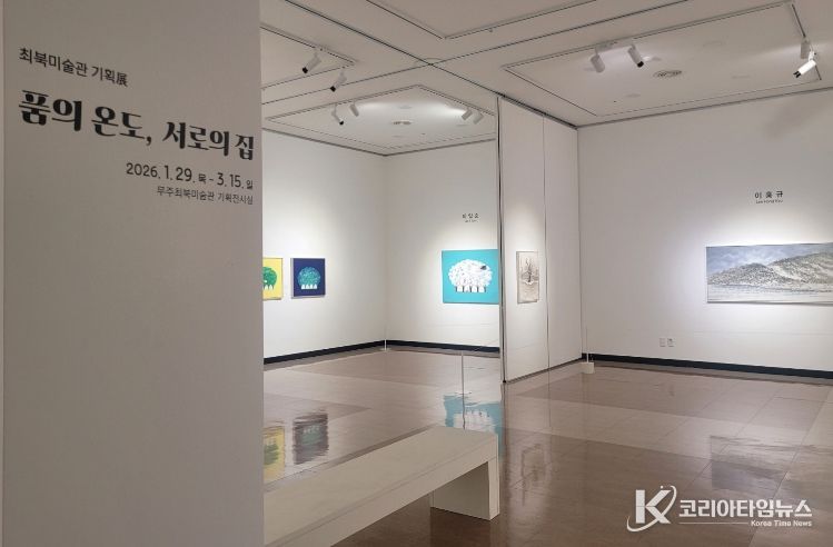 코리아타임뉴스 김태훈 기자 | 무주군 최북미술관(공립 1종 미술관)이 야심 차게 준비한 올해 첫 전시, ‘품의 온도, 서로의 집’ 展이 관람객들을 손짓하고 있다.