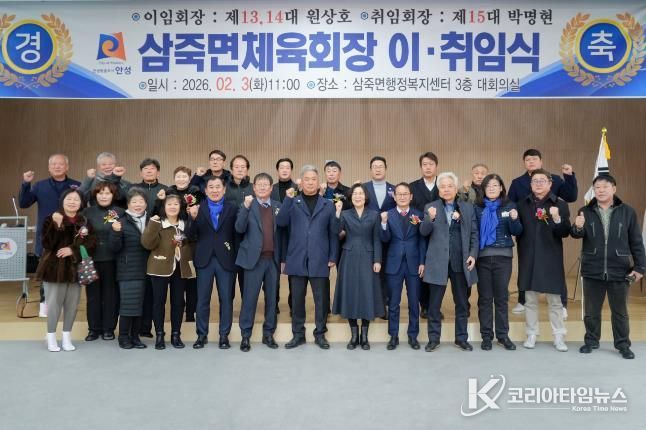 코리아타임뉴스 경기취재본부 | 안성시 삼죽면은 지난 2월 3일, 삼죽행정복지센터 3층 대회의실에서 열린 삼죽면 체육회장 이·취임식을 성황리에 마쳤다고 밝혔다.