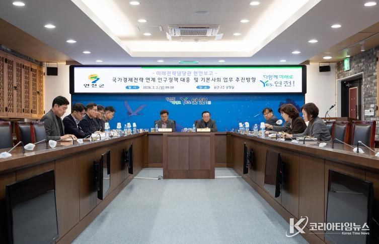 코리아타임뉴스 윤광희 기자 | 연천군은 지난 2일 군청 상황실에서 국가 경제성장전략과 연계한 인구정책 대응방안 및 기본사회 업무 추진방향을 논의하는 현안회의를 개최했다.