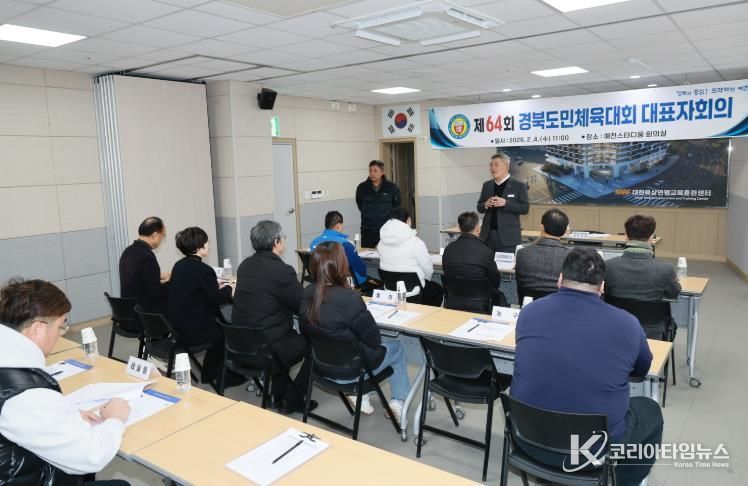 코리아타임뉴스 경북취재본부 | 예천군은 4일 오전 11시, 예천군스타디움 1층 회의실에서 제64회 경북도민체육대회 출전을 위한 종목단체 대표자회의를 개최하고, 대회 전반에 대한 주요 일정과 운영 사항을 공유했다.