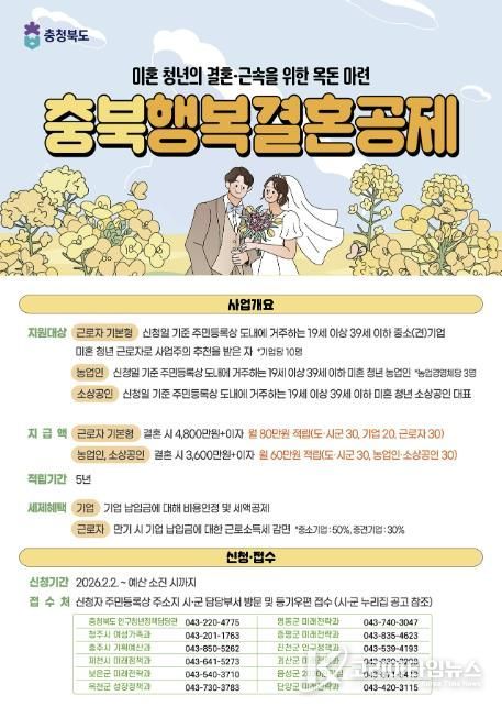 코리아타임뉴스 충북취재본부 | 음성군은 ‘2026년 충북행복결혼공제’ 신규 참여자 58명을 선착순으로 모집한다.