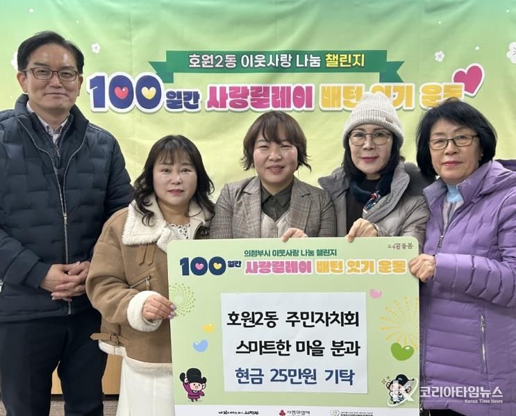 코리아타임뉴스 기동취재팀 | 의정부시 호원2동주민센터는 지난해 12월부터 올해 2월까지 호원2동 주민자치회 회장 김규오, 부회장 이영배를 비롯한 아름다운 마을·스마트한 마을·살기 좋은 마을 분과가 지역 내 어려운 이웃을 돕기 위해 성금 50만 원, 쌀 50kg, 컵라면 10상자, 쌀국수 200인분, 사과즙 30박스를 기탁했다고 밝혔다.