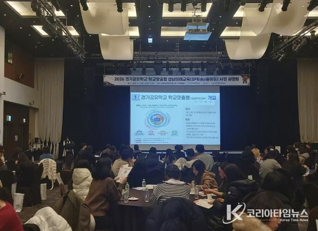 코리아타임뉴스 사회팀 | 경기도성남교육지원청은 5일 밀리토피아호텔에서 관내 초·중·고·특수학교 교원 및 지자체 관계자 등 300여 명이 참석한 가운데 ‘2026 경기공유학교 학교맞춤형 성남미래교육(숲에듀) 사업설명회’를 개최했다.