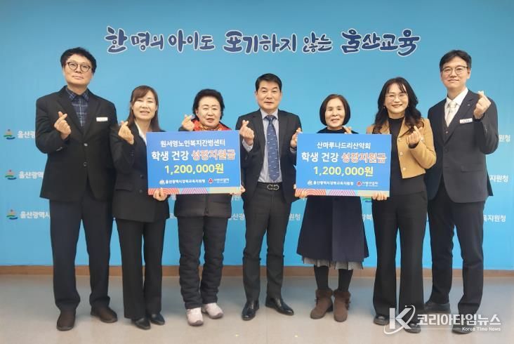 코리아타임뉴스 사회팀 | 원서영노인복지간병센터와 산마루나드리산악회가 5일 울산강북교육지원청을 방문해 취약‧위기 학생 지원을 위한 후원금 240만 원을 기탁했다.