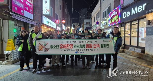 코리아타임뉴스 이아름 기자 | 부산시 영도구는 겨울방학을 맞아 청소년 유해업소, 유해약물 및 유해물건 등으로부터 청소년을 보호하기 위해 지난 2월 4일 남항동 일원에서 ‘겨울방학 대비 청소년 유해환경 지도·점검 캠페인’을 실시했다.