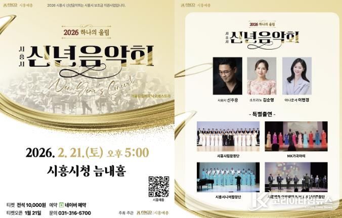코리아타임뉴스 경기취재본부 | 시흥시가 지원하고 (사)한국예술문화단체총연합회 시흥지회에서 주관하는 ‘2026 시흥시 신년음악회- 하나의 울림’이 오는 2월 21일 오후 5시, 시청 늠내홀에서 개최된다.
