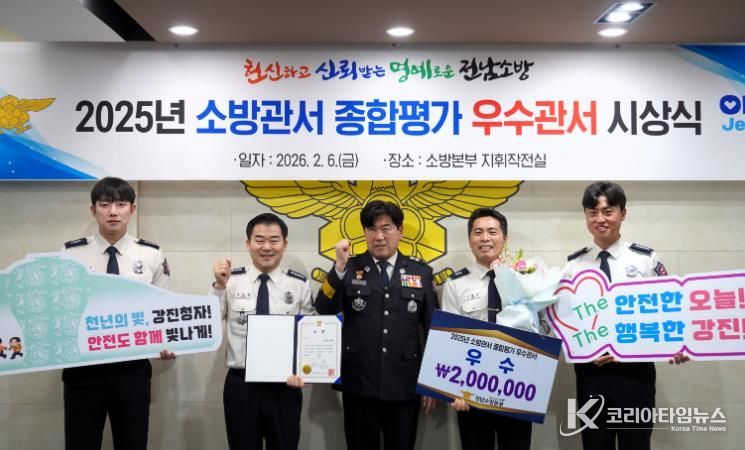 한편, 이날 시상식에는 도내 7개 소방서가 참석했으며, 우수 관서로 선정된 강진소방서는 도지사 표창과 함께 포상을 받았다.